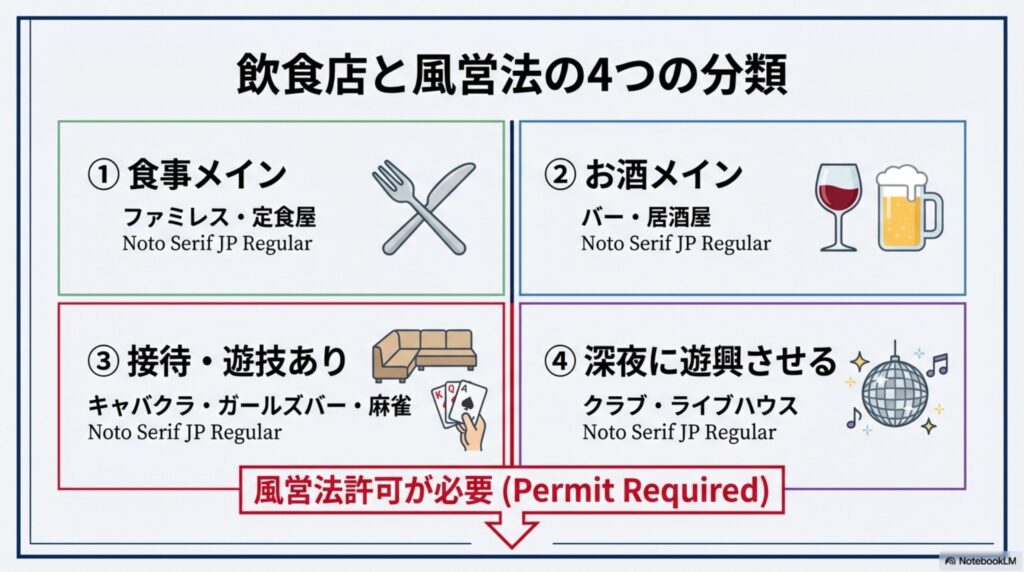 風営法との関連性は大きく4つに分けられる事ができます。